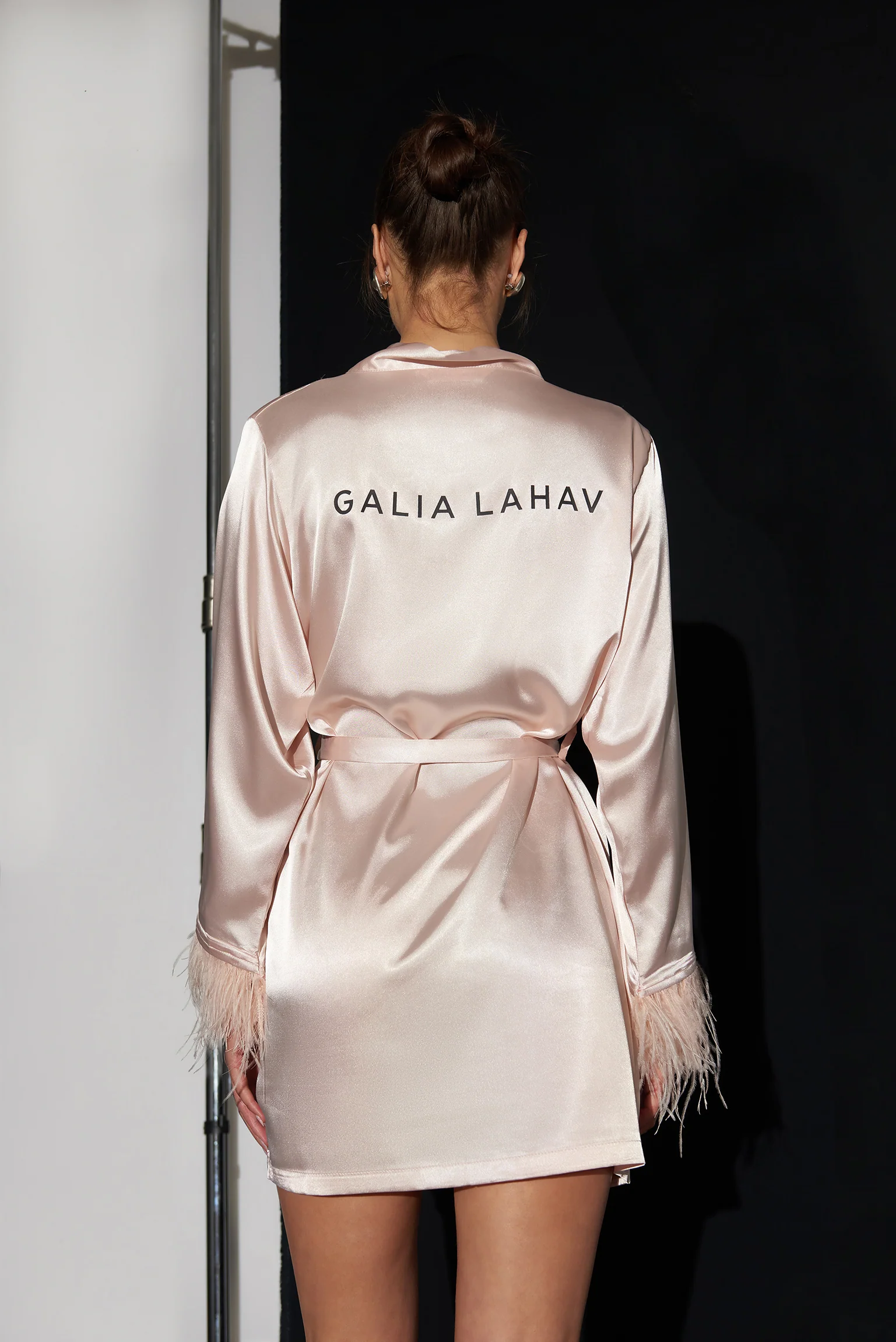 Indulge in luxury with our long ivory silk robe, perfect for the bride who loves a touch of drama. Featuring sumptuous feather trim on the sleeves, our iconic logo on the back, and "BRIDE" embellished with crystals, this robe ensures you shine as you prepare for your big day.