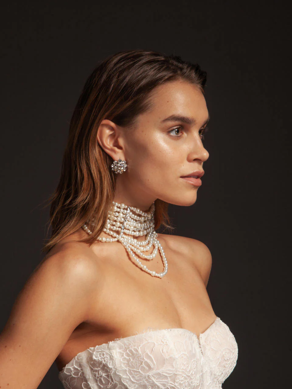 Add extra detail to your look and celebrate your décolletage with the Oyster Pearl high-neck choker. Made of a selection of beautiful pearls with crystal accents.